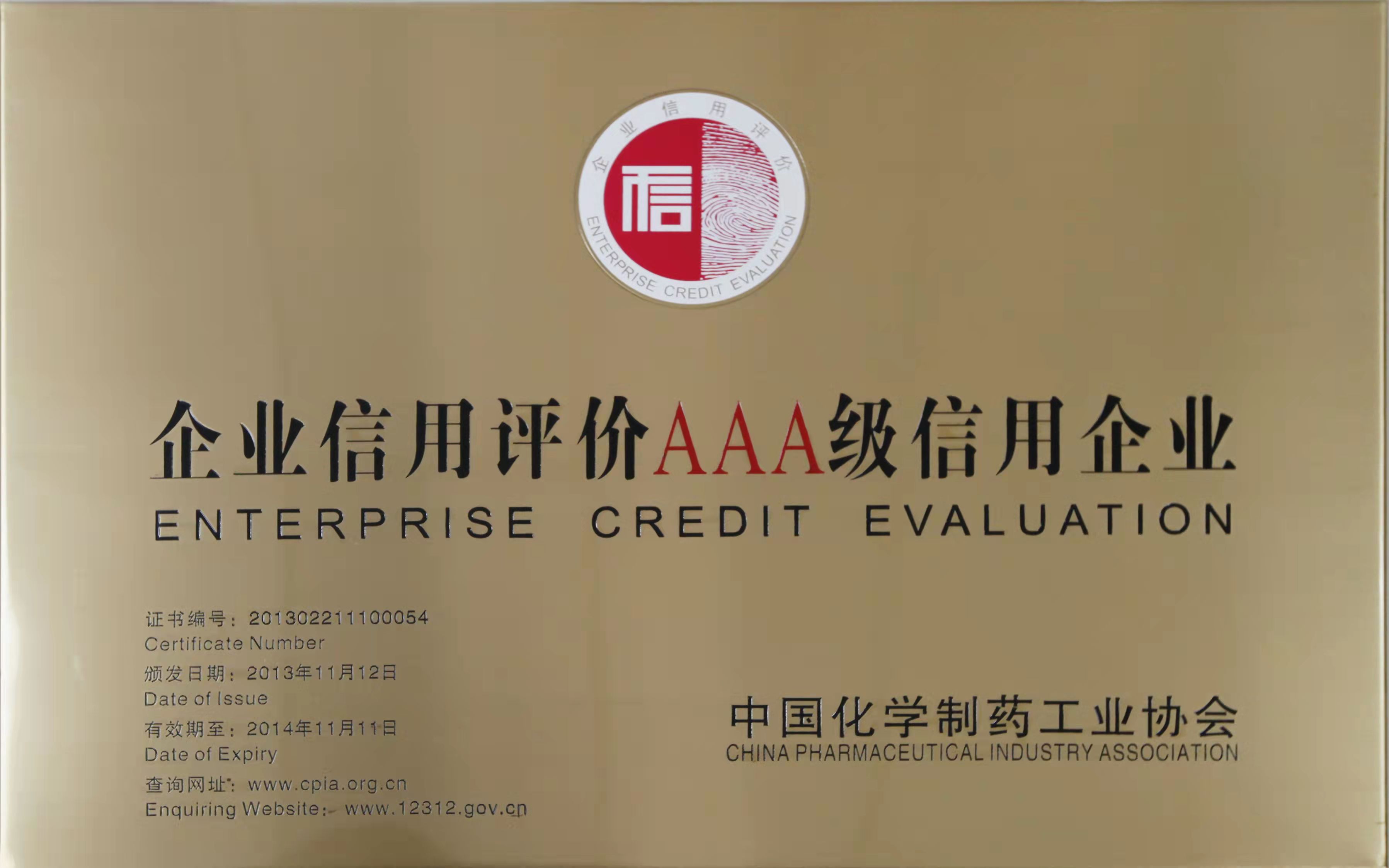 評為企業(yè)信用評價(jià)AAA級信用企業(yè)
