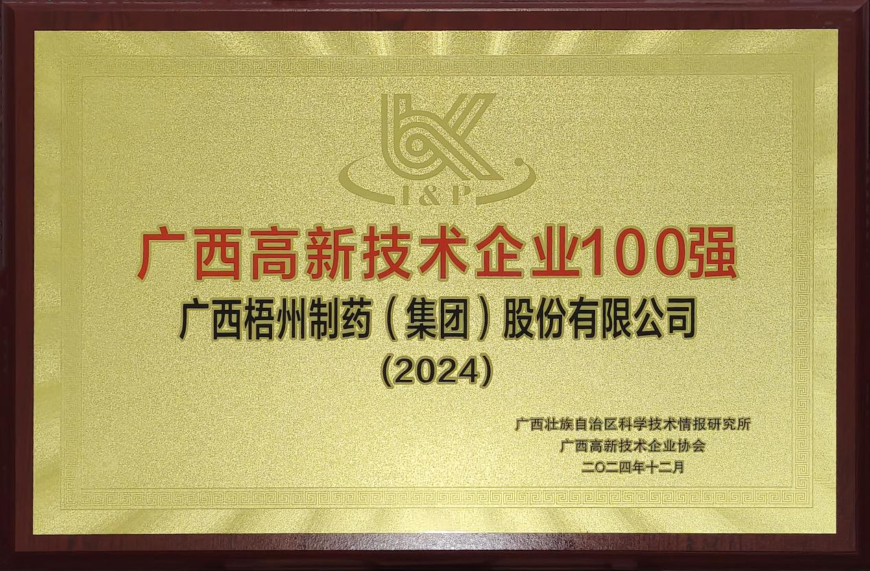 近日,標志著“2024年廣西高新技術企業(yè)百強”榮譽的官方牌匾,正式送達廣西梧州制藥(集團)股份有限公司(以下簡稱:梧州制藥)。這不僅為此次評選畫上圓滿句號,也意味著梧州制藥成功實現(xiàn)了自2023年以來的連續(xù)兩年蟬聯(lián),充分彰顯了其穩(wěn)固的創(chuàng)新優(yōu)勢和行業(yè)競爭力。