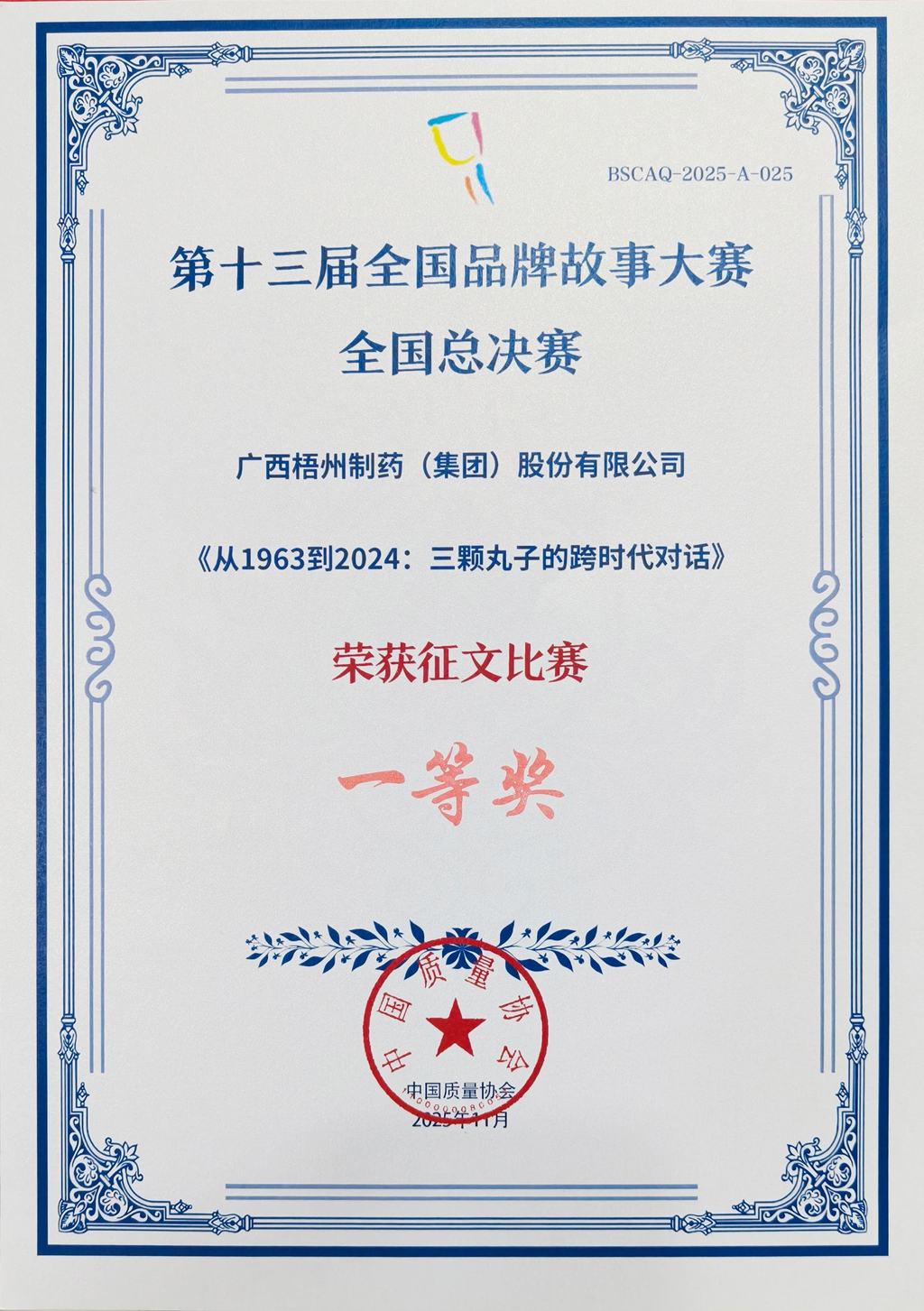 廣西梧州制藥(集團(tuán))股份有限公司征文(三顆丸子的跨時(shí)代對(duì)話)獲第十三屆全國(guó)品牌故事大賽全國(guó)總決賽征文比賽一等獎(jiǎng)