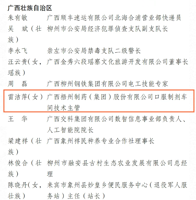 雷潔萍(女) 廣西梧州制藥(集團)股份有限公司口服制劑車間技術(shù)主管