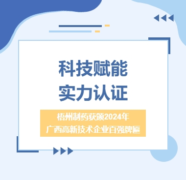 科技賦能實力認(rèn)證梧州制藥獲頒2024年廣西高新技術(shù)企業(yè)百強(qiáng)牌匾近日,標(biāo)志著“2024年廣西高新技術(shù)企業(yè)百強(qiáng)”榮譽(yù)的官方牌匾,正式送達(dá)廣西梧州制藥(集團(tuán))股份有限公司(以下簡稱:梧州制藥)。這不僅為此次評選畫上圓